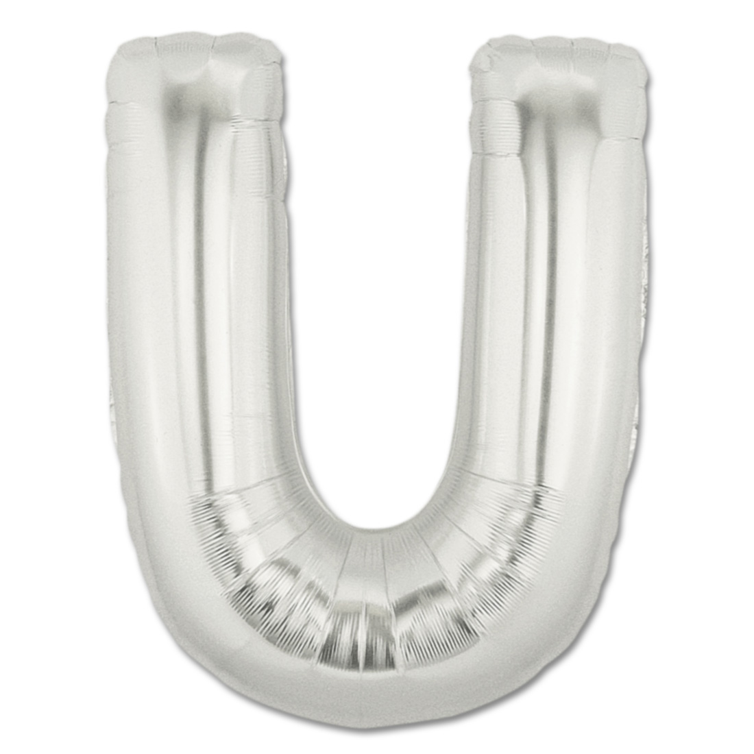 Balon folie cu forma de litera “U”, 101cm, culoare argintie, potrivit pentru umflare cu aer sau heliu.
