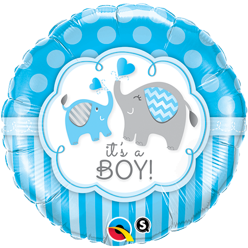 IT’S A BOY ELEPHANTS – BALON FOLIE BOTEZ, FORMA ROTUNDA, DIAM. 45CM